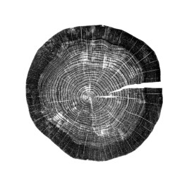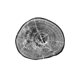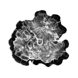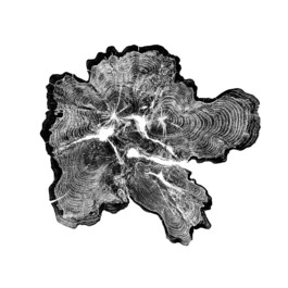Ich fotografiere die Querschnitte eines gefällten Baumes, entweder noch frisch im Wald oder bereits getrocknet - gekennzeichnet durch Schrumpfung und Risse -, und erstelle eine Vorlage durch digitale Bearbeitung. Von den Querschnitten eines gefällten Baumes fertige ich maßstabsgetreue Gravuren von Hand auf Acrylglas an. Der manuelle Prozess der Gravur ist für mich gleichzeitig eine Meditation über den Baum, über Wachstum, Alter, Krise, Leben und Tod.